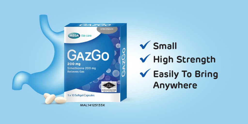 Gazgo contains simethicone and offers enhanced comfort with a faster onset of action. It provides relief within 30 minutes and works directly in the stomach without entering the bloodstream.