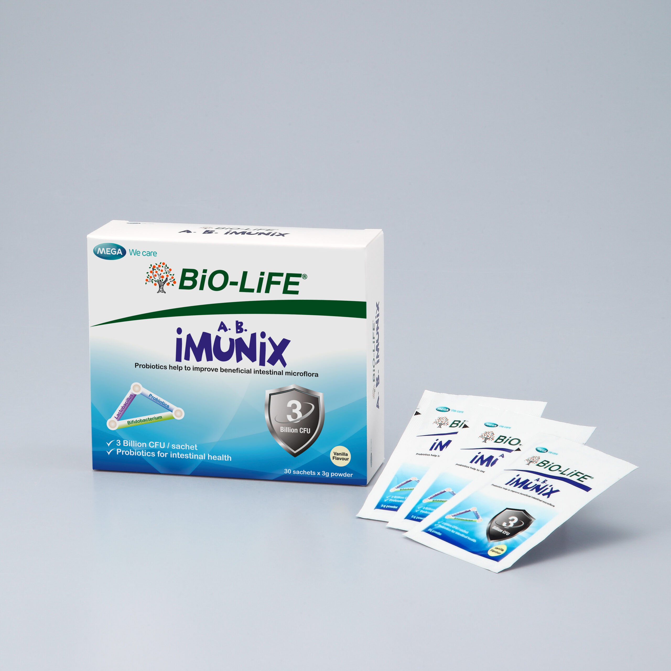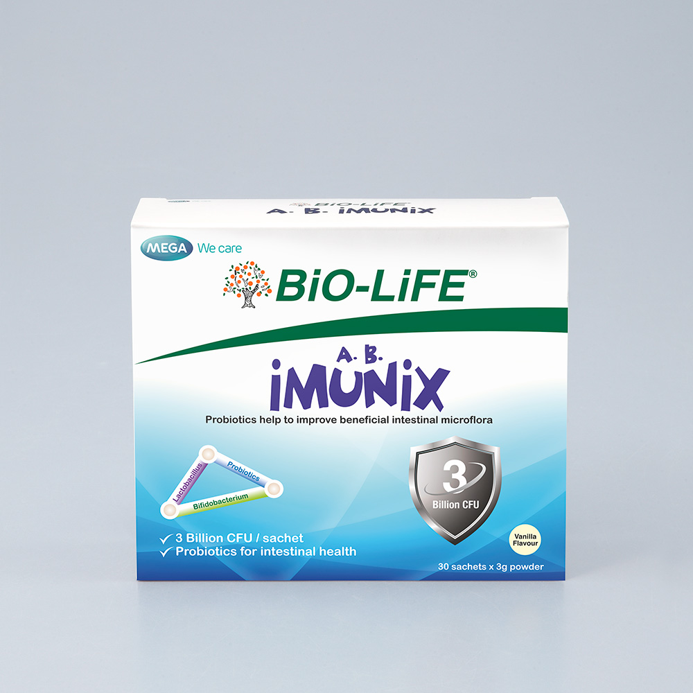 A.B. Imunix mengandungi 2 strain probiotik iaitu Lactobacillus acidophilus NCFM® dan Bifidobacterium lactis BL-04 dengan inulin prebiotik. Sinbiotik ini bekerjasama untuk meningkatkan pertumbuhan bakteria bermanfaat. Ia sesuai untuk kanak-kanak berumur 2 tahun dan ke atas dan orang dewasa yang ingin mengekalkan kesihatan badan.