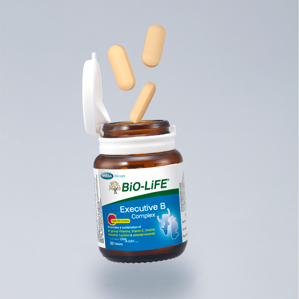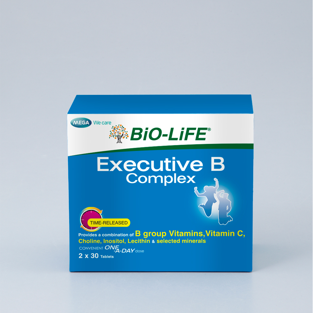 • BiO-LiFE Executive B Complex 提供维生素B群附加维生素C及特定矿物质的组合, 以满足忙碌人士的营养需求。