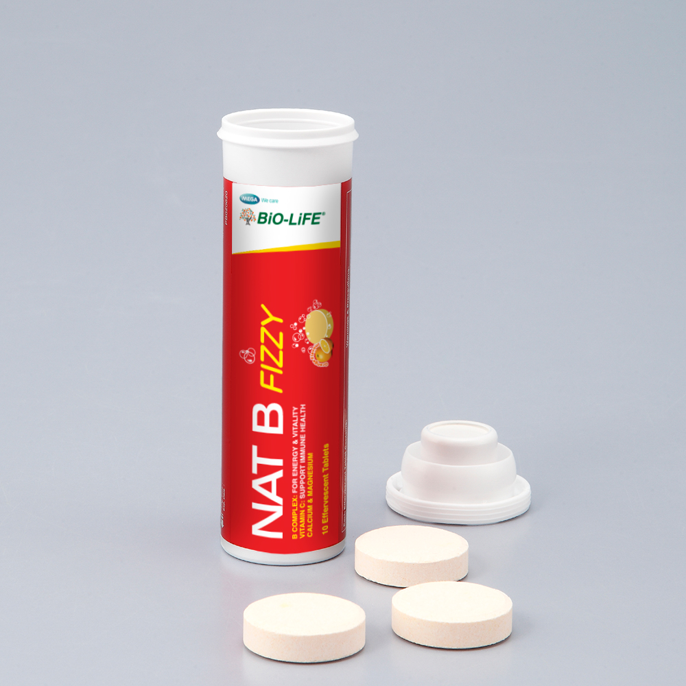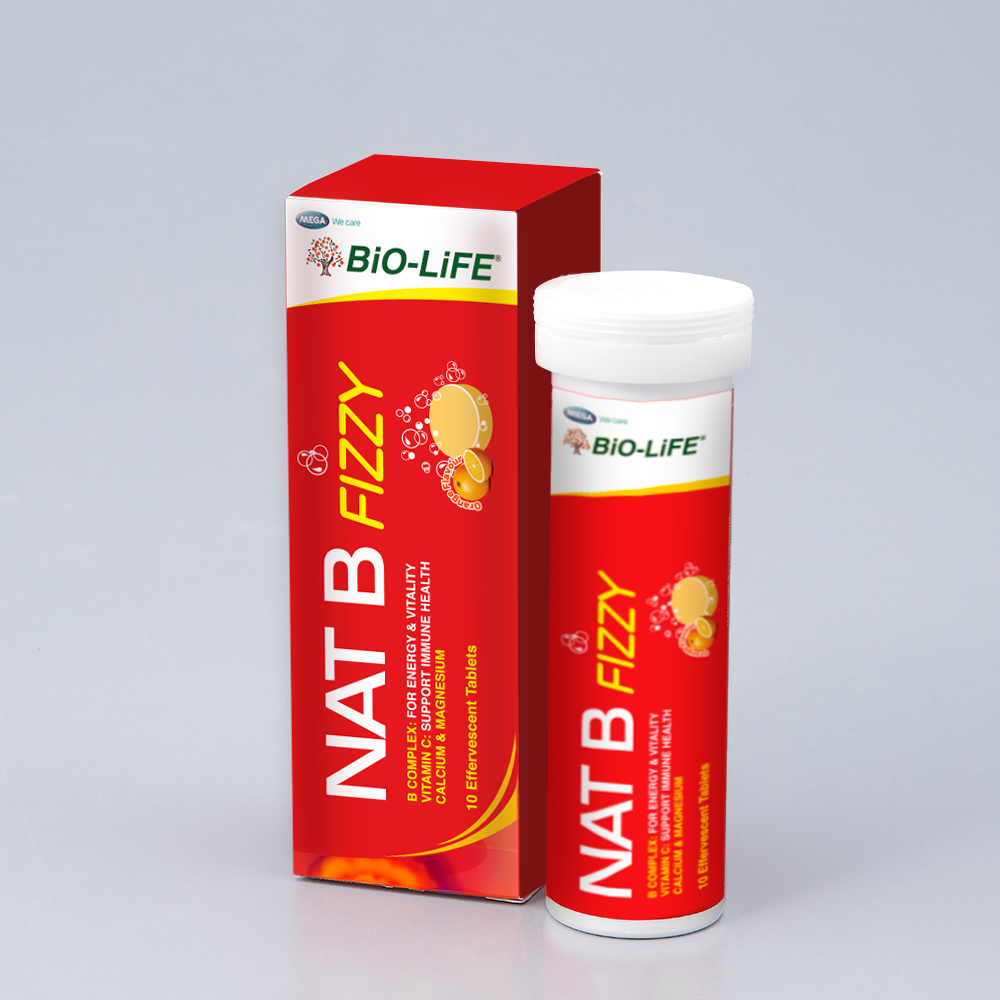 Nat B Fizzy replenishes your daily needs of vitamin B complex for energy and vitality. Added with magnesium and calcium to help relieve general tiredness and weakness due to hectic lifestyle and Vitamin C 1,000mg to support immune health.