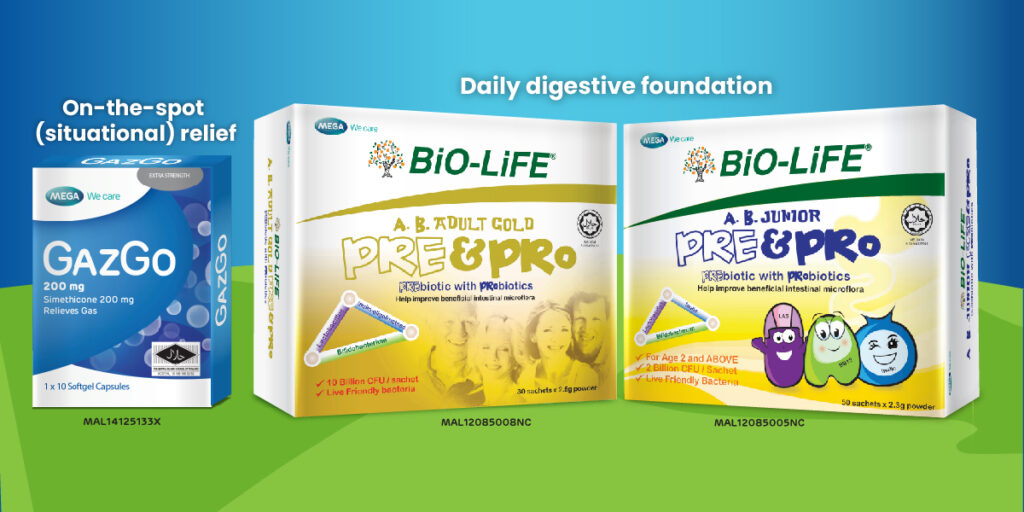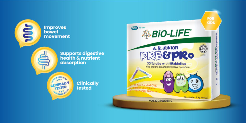 BiO-LiFE A.B. Adult Gold Pre & Pro and A.B. Junior Pre & Pro, when incorporated into the daily diet, help maintain a balanced gut microbiota, providing a strong digestive foundation to support gut and immune health during routine changes throughout Ramadhan and Raya.