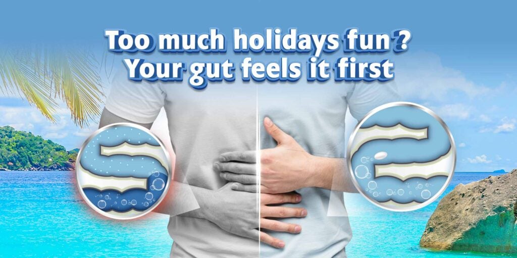 December is all about travelling, feasting, and enjoying time off — but unfortunately, our gut doesn’t get a break. While you would like to enjoy your year-end adventures fully, your gut might not always be on the same page — especially when the pesky “holiday gut effect” strikes suddenly in the middle of your trip, ruining the whole experience.