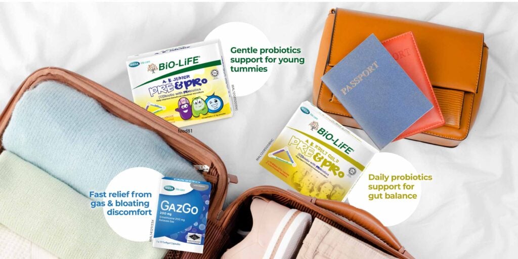 Bringing these essential gut-friendly products along on your travels does no harm — in fact, they can make all the difference. Think of probiotics as your gut’s “travel insurance”, helping maintain gut balance and protect against unfamiliar foods and routines, while GazGo acts as your “first-aid kit” to provide quick relief from sudden gut discomfort caused by excessive gas.